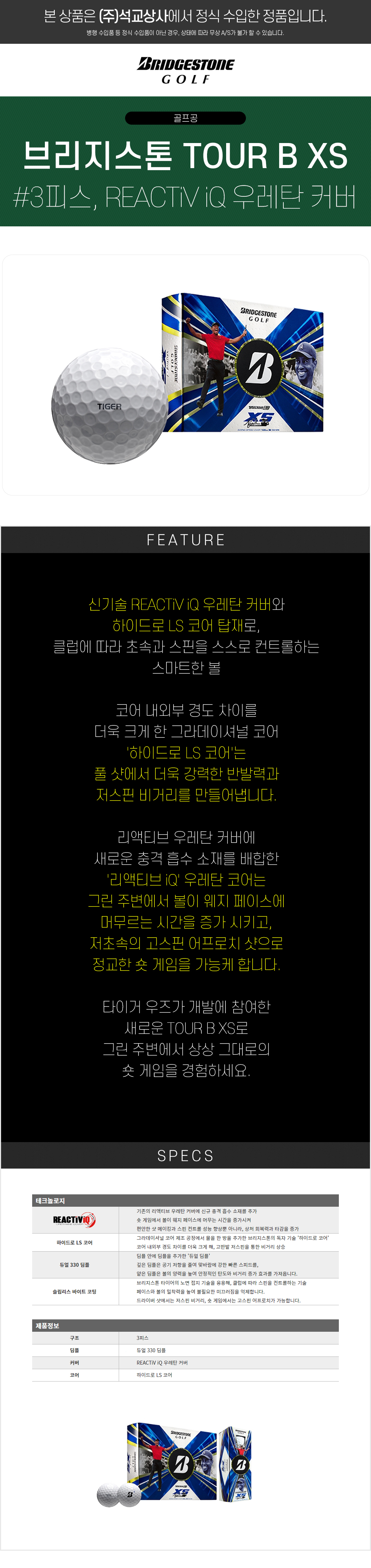| 품명 및 모델명 | 브리지스톤 tourB-XS 골프볼<br>[3피스/12알/화이트] | ||